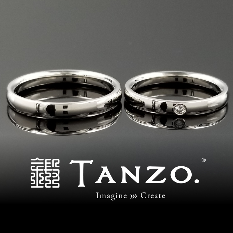 ■右のリング(女性リング)幅:2.5mm、厚み:1.7mm、表面加工:鏡面仕上げ・ダイヤ1石セッティング