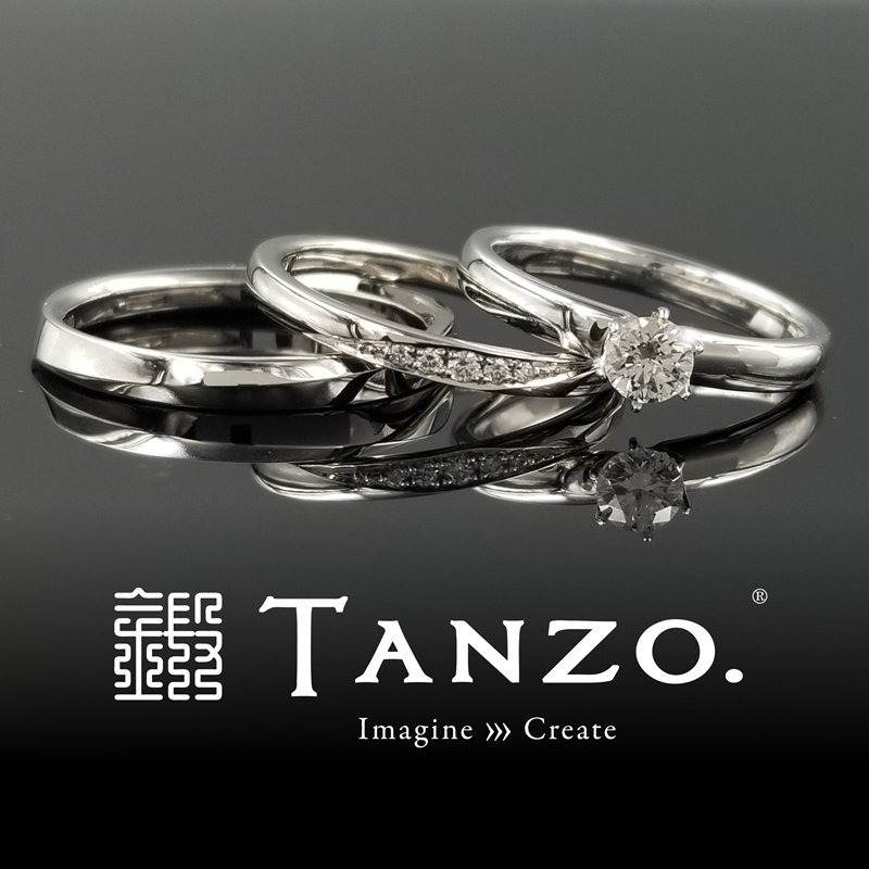 ストレートのリングに輝く鏡面仕上げは、美しい龍田川をイメージしています。お二人の人生にも、センターのダイヤモンドのように輝く素晴らしい未来が待っていることでしょう。