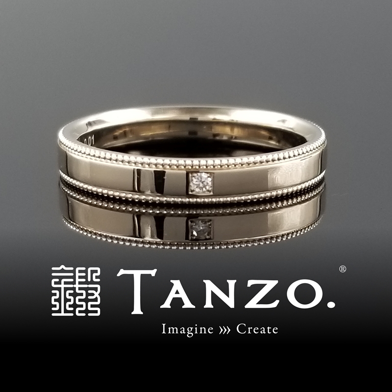 ■右のリング(女性リング)幅:3.0mm、厚み:1.7mm、表面加工:上下ミル加工・鏡面仕上げ・ダイヤ1石セッティング