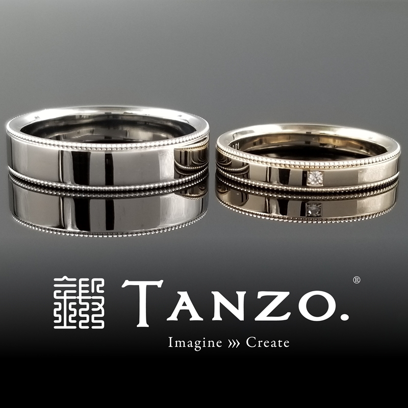 ■左のリング(男性リング)幅:4.5mm、厚み:1.7mm、表面加工:上下ミル加工・鏡面仕上げ