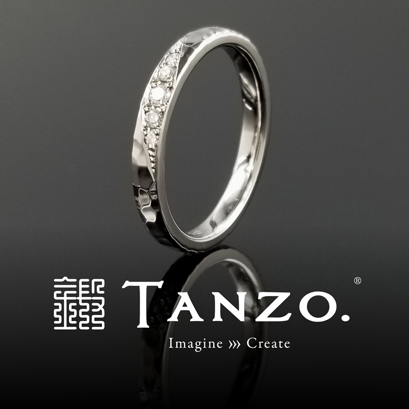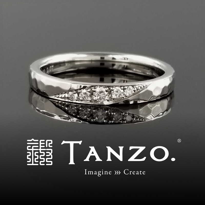 舞っている梅の花を綺麗に輝く鏡面の槌目加工で表現しています。あなたがあまりにも美しくて、天から舞い降りてきたのではないかと思う心情がリングに込められています。