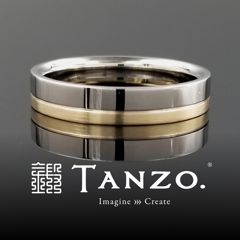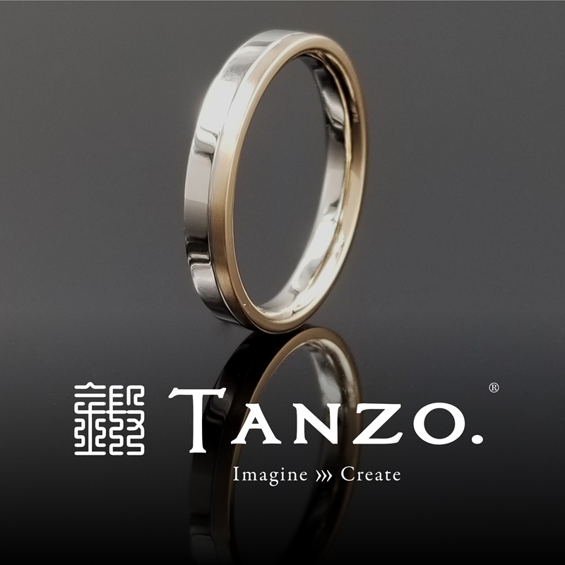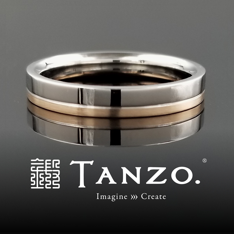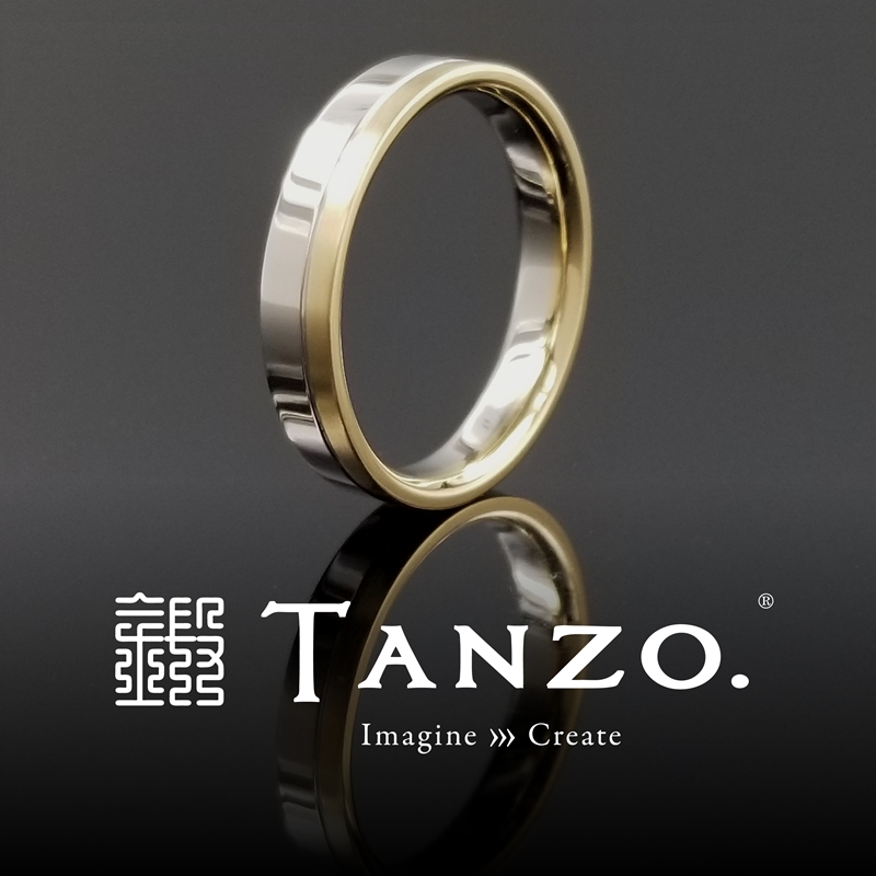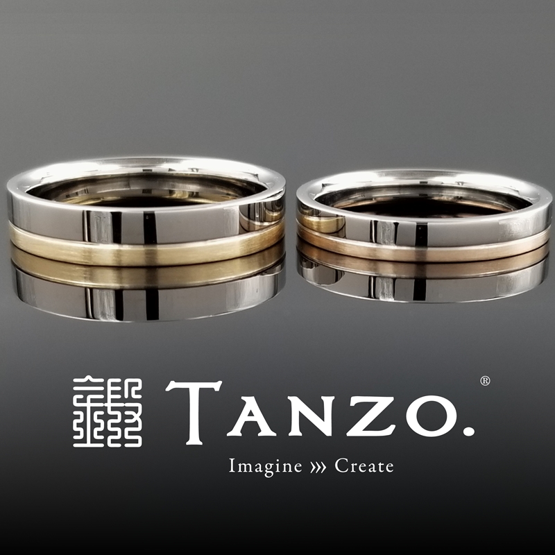 ■左のリング(男性リング)幅:4.0mm、厚み:1.7mm、表面加工:ライン加工・鏡面仕上げ(上側)・横ヘアライン加工(下側)