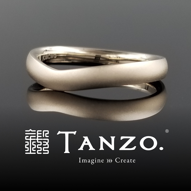 ■左のリング(男性リング)幅:3.0mm、厚み:1.7mm、V字ウェーブ(強)、表面加工:マット加工