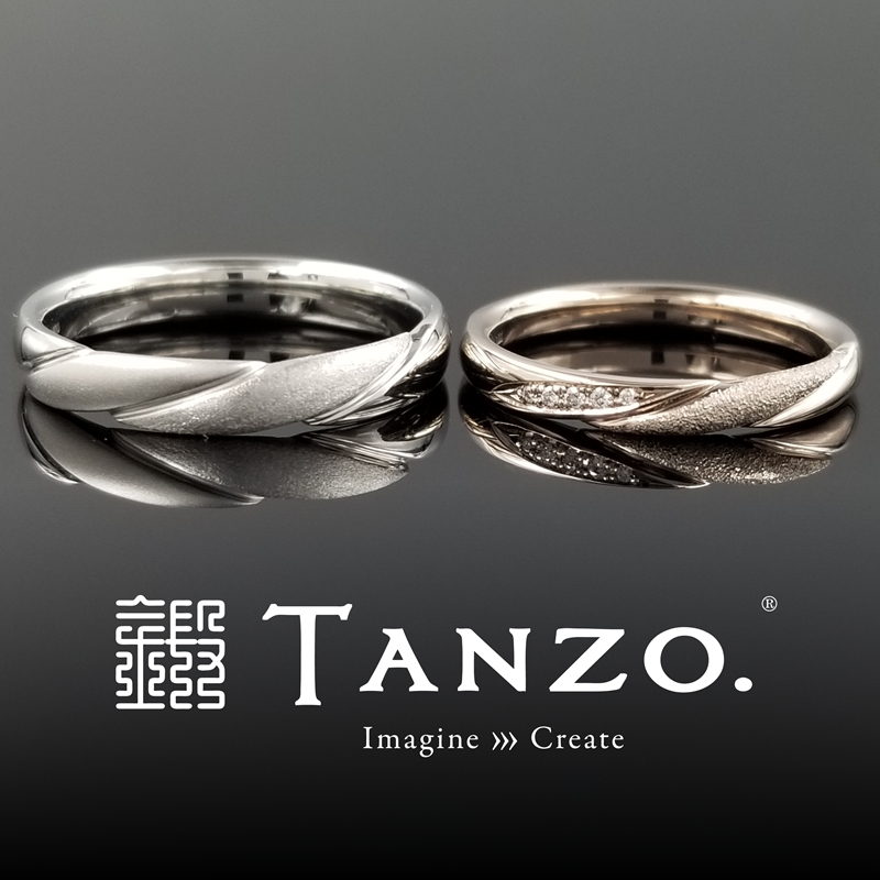 ■左のリング(男性リング)幅:3.5mm、厚み:1.7mm、表面加工:削り加工・マット加工・粗めマット加工・鏡面仕上げ