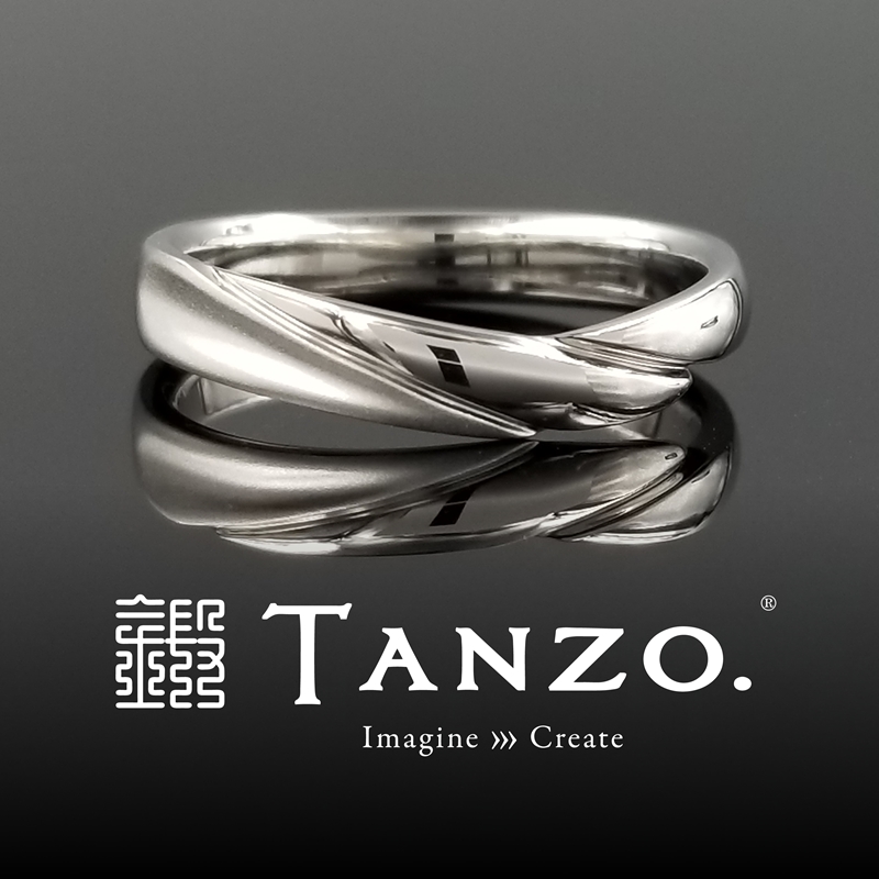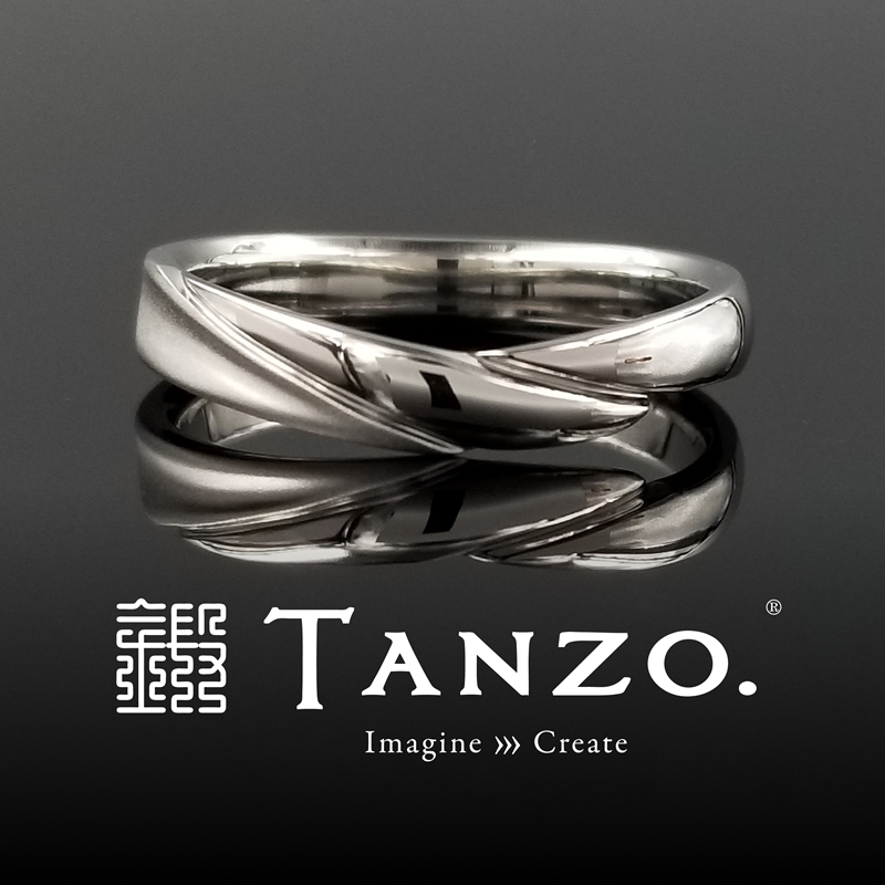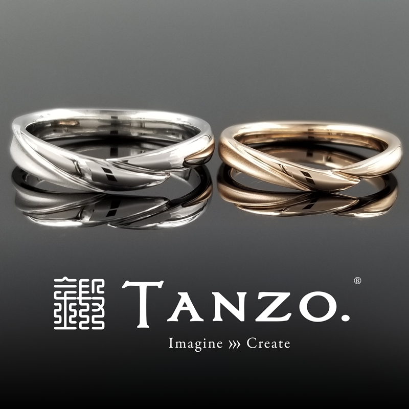 ■左のリング(男性リング)幅:3.5mm、厚み:1.7mm、V字ウェーブ(強)、表面加工:えぐり加工・削り加工・マット加工(フェードアウト)・鏡面仕上げ
