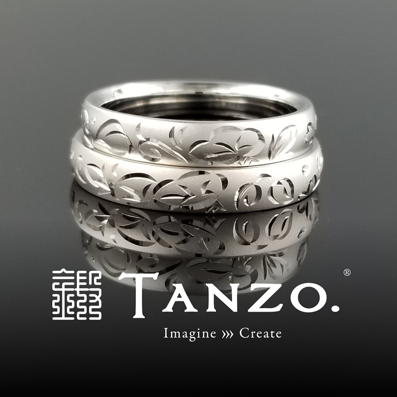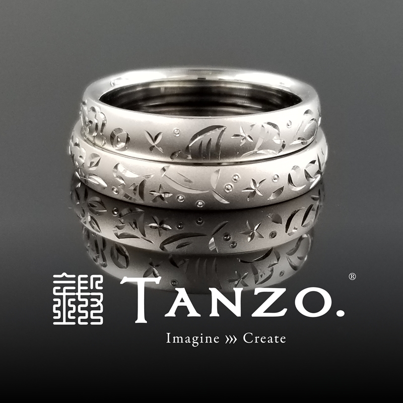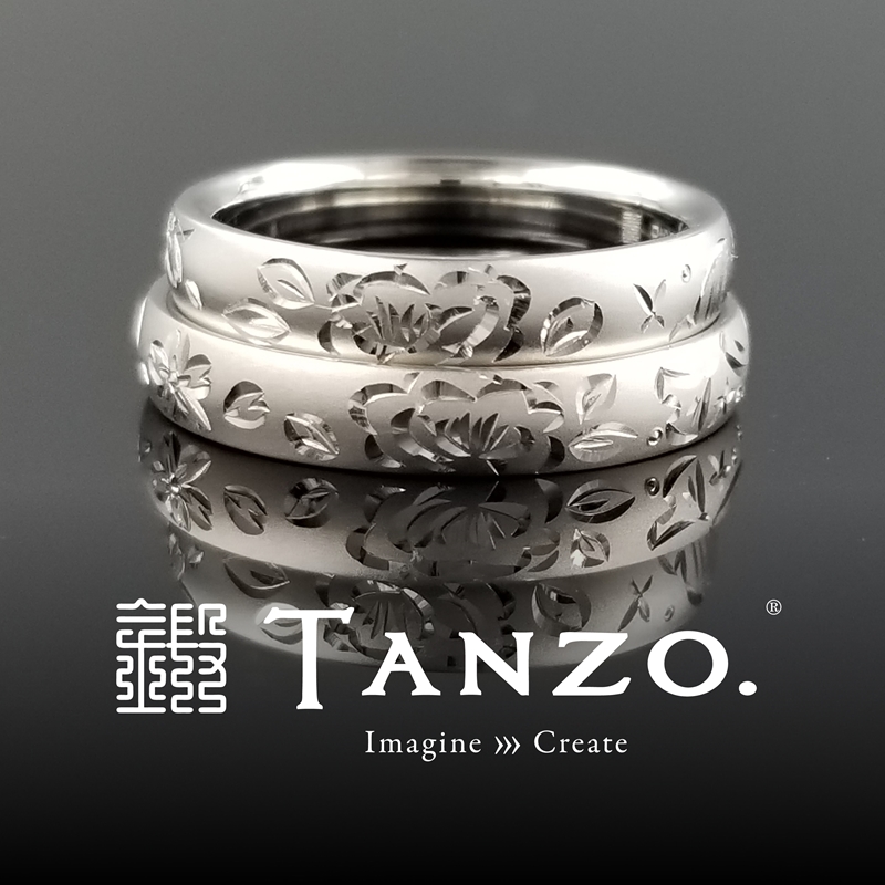 日本の四季折々で楽しめる、桜・朝顔・銀杏(いちょう)・山茶花(さざんか)を彫りました。花々は美しいですが、それを身に着けているあなたはさらに美しい。特別なあなたと共に春夏秋冬咲き誇る花を一緒に見ていきたいという気持ちを込めて。