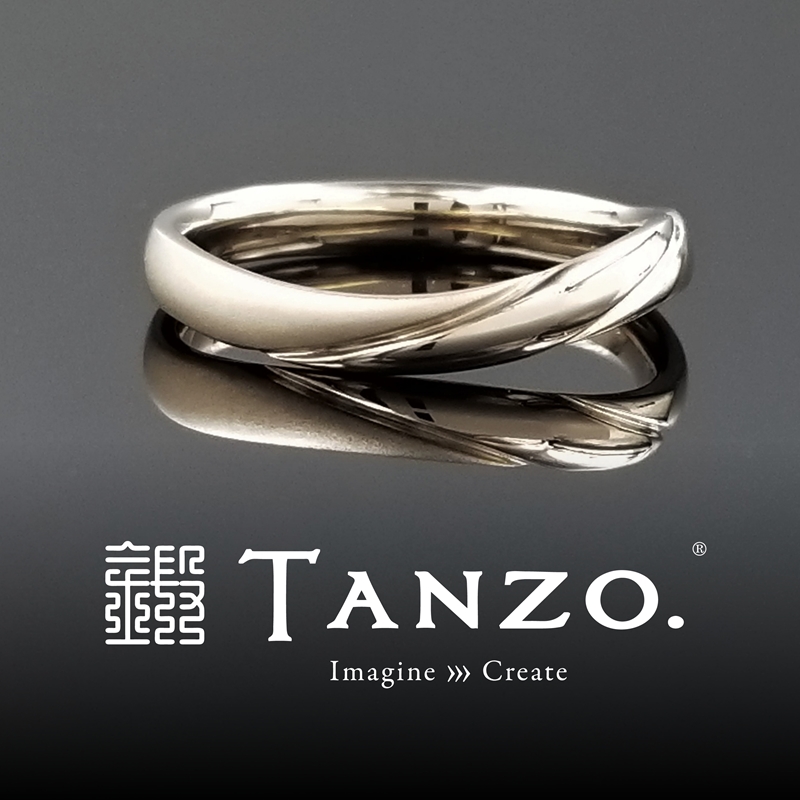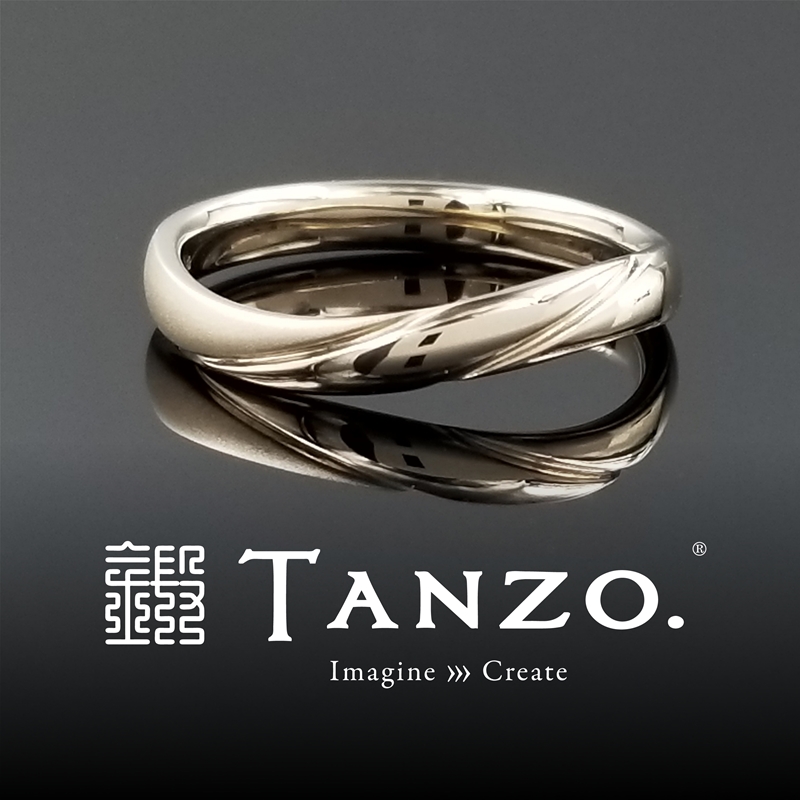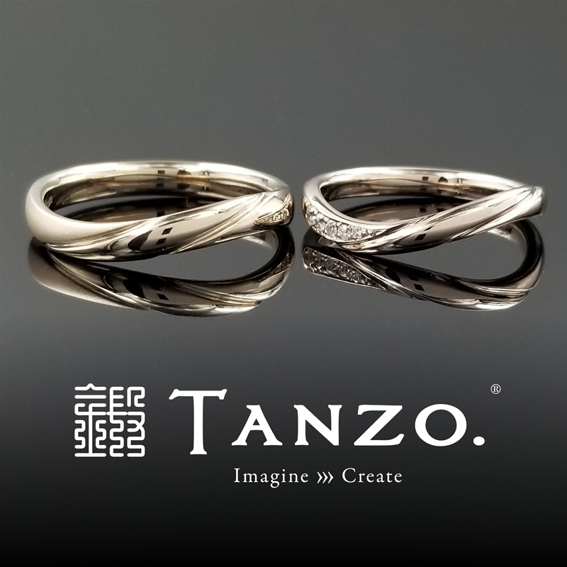 ■左のリング(男性リング)幅:3.0mm、厚み:1.7mm、S字ウェーブ(強)、表面加工:削り加工・鏡面仕上げ・マット加工(フェードアウト)