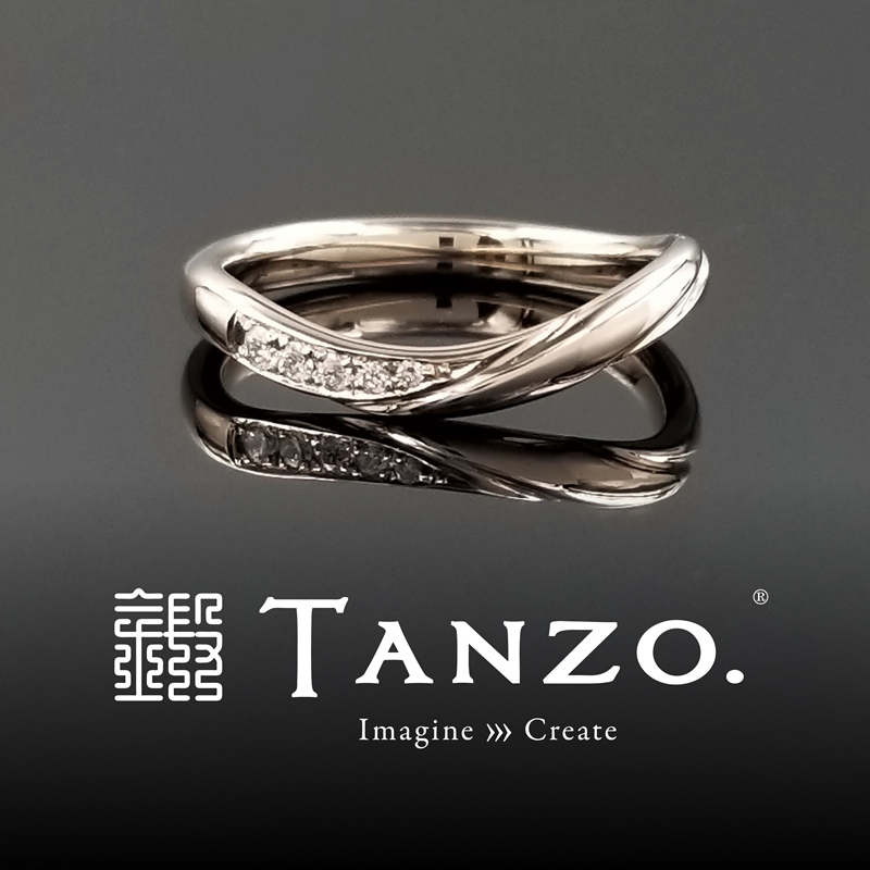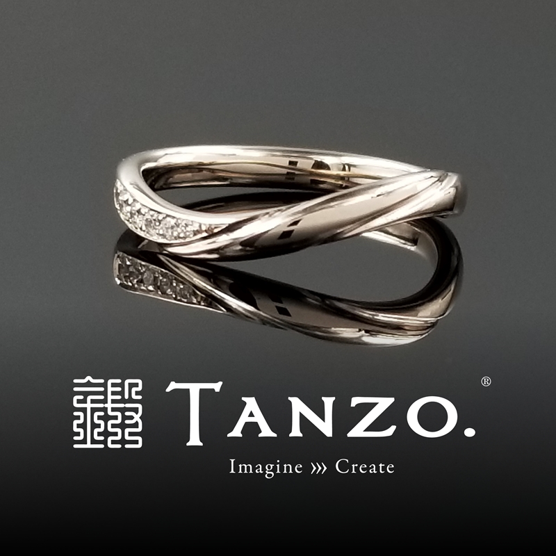 どんなことも乗り越えて、あなたの傍にいるという気持ちが込められています。二人の固い絆を強いウェーブで表現し、二本のラインが同じ方向を見て共に歩んでいくことを描写しています。