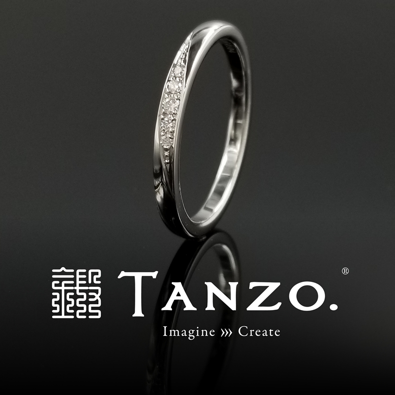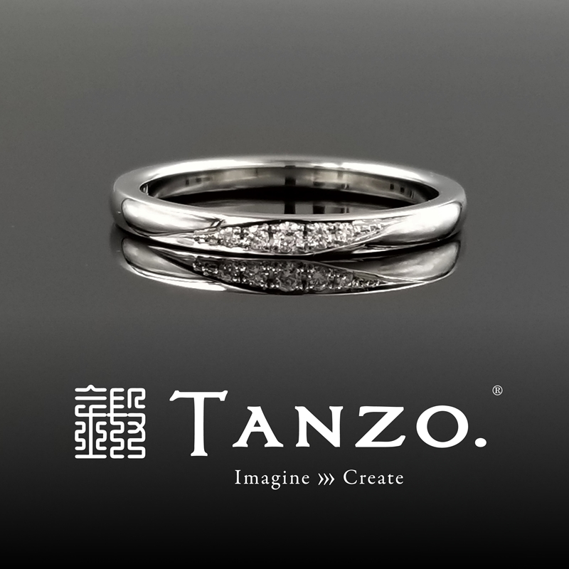 ■右のリング(女性リング)幅:2.0mm、厚み:1.7mm、表面加工:ダイヤ5石セッティング・鏡面仕上げ