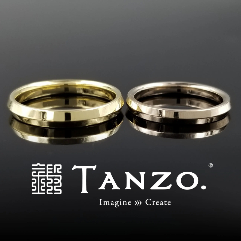 ■左のリング(男性リング)幅:3.0mm、厚み:1.7mm、表面加工:面取り加工・鏡面仕上げ